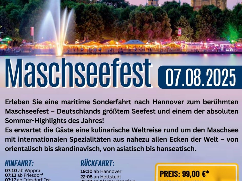 „Das Maschseefest, das vom 30. Juli bis zum 17. August 2025 in Hannover stattfindet, lockt jedes Jahr Tausende Besucher mit einem einzigartigen Mix aus kulinarischen Köstlichkeiten, Livemusik und kulturellen Highlights. Es erwartet die Gäste eine kulinarische Weltreise rund um den Maschsee mit internationalen Spezialitäten aus nahezu allen Ecken der Welt – von orientalisch bis skandinavisch, von asiatisch bis hanseatisch. Ein Paradies für Genießer, das sogar vom internationalen Reiseportal „Big 7 Travel“ als eines der besten Sommerfestivals für Genießer ausgezeichnet wurde.“ - so die Pressemitteilung Tourist Information Hannover.