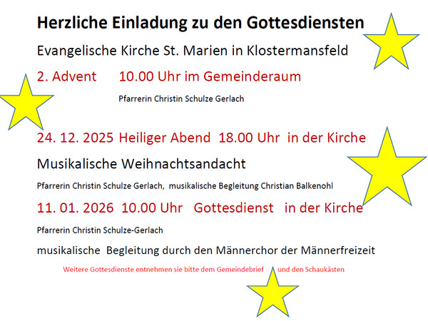 Gottesdienste in der evangelischen Kirche zur Advents und Weihnachtszeit