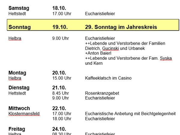 Aktuelle Vermeldungen der Katholischen Pfarrei Sankt Georg im Mansfelder Land: