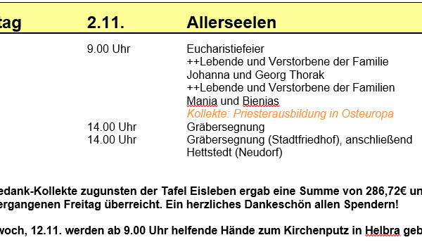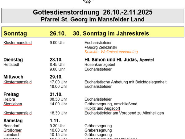 Aktuelle Vermeldungen der Katholischen Pfarrei Sankt Georg im Mansfelder Land: