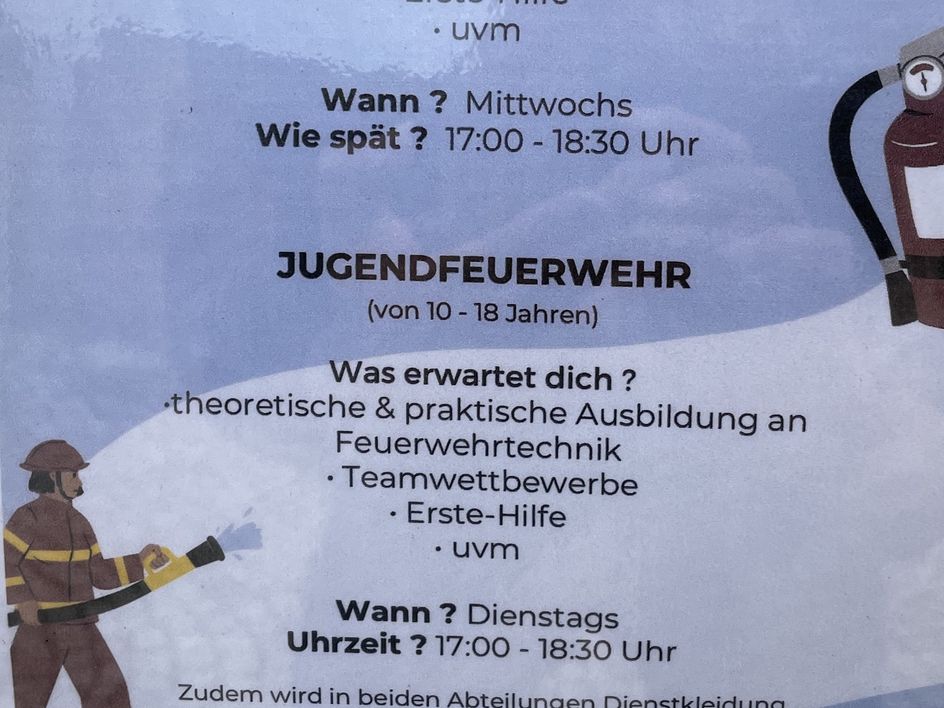 Die Ausbildung in der Jugendfeuerwehr findet Dienstags von 17:00 - 18:30 Uhr statt.